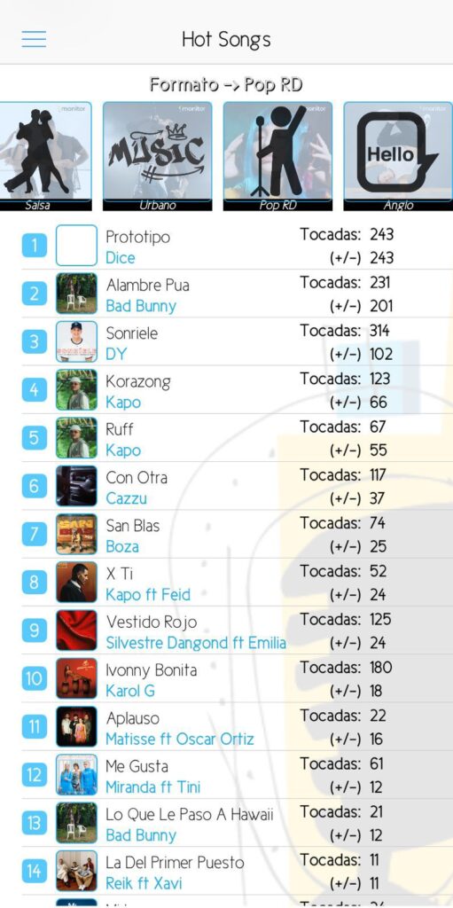 En tan solo una semana, el tema musical, ha experimentado un crecimiento exponencial subiendo más de 1,776 posiciones en el chart pop. Actualmente la canción figura en el chart general de Hot Song de Monitor Latino, ocupando la posición número 4 y en el listado Pop del Chart Hot Song ocupa al dia de hoy la posición número 1, por dos días consecutivos, compitiendo junto a Bad Bunny, Daddy Yankee, Kapo y Cazzu. También, se suman a sus logros, su inclusión en el top 50 del chart general en formato puro de Monitor Latino ocupando la posición 43, mientras que, en el chart de pop ocupa la posición número 9 en tocadas.