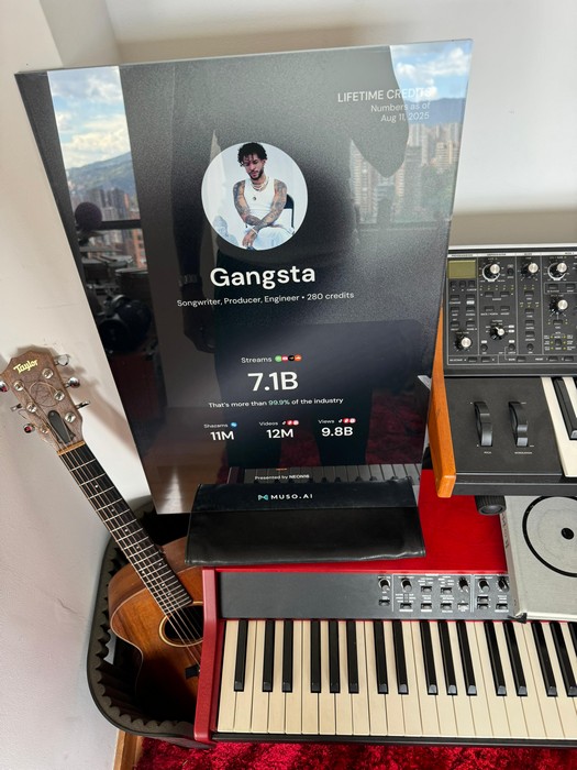 Esta cifra refleja el fruto de varios temas que han logrado abrirse paso y llegar al corazón de millones de oyentes en el mundo. Al recibir este reconocimiento, Gangsta reafirma su posición como uno de los productores más influyentes de la escena musical actual, siendo pionero del afrobeat en Latinoamérica.